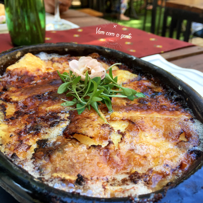 Tartiflette (gratinado de queijo Raclette com bacon, cebola e batata molhados no vinho Branco). R$45,00
