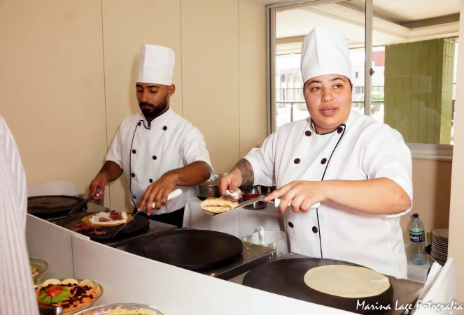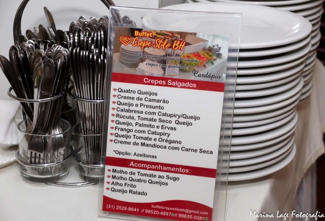 O pessoal do Crepe Stilo deram um show também. Eles praticamente fazem a festa para você. No pacote deles está incluído nada mais nada menos que um buffet de salada, 9 sabores de crepes salgados com opções de molhos e acompanhamentos, 8 opções de crepe doce com caldas e sorvete, bebidas não alcóolicas e o pessoal para fazer o crepe, garçons para servir as bebidas e organizar as mesas (e que equipe, viu? Todos impecáveis). Os crepes DELICIOSOS fizeram muito sucesso!!! E o melhor de tudo, um custo-benefício excelente! – E leitor do Vem com a Gente tem 10% de desconto ao fechar com eles. (O valor fica menos que R$30 por pessoa)!!!