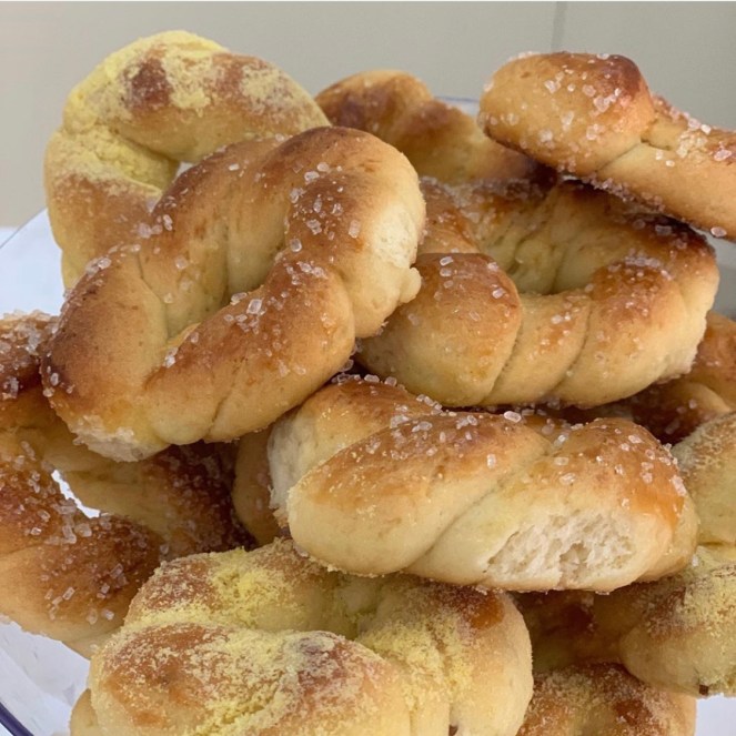 Como a festa começou às 10 da manhã, montamos uma mesa de quitutes da Padaria Esquinão: Broa de milho, bolo de laranja, croissant de queijo, rosquinhas… tudo que todo mundo ama! A Padaria Esquinão é uma verdadeira perdição. Tem um mix enorme de produtos e tudo é feito lá, artesanalmente e fresquinho. Foi difícil escolher os itens… tudo é simplesmente DELICIOSO! Encomendamos tudo com antecedência, e eles se programaram para produzir no dia da festa, bem cedinho, e no horário combinado já estava tudo pronto pra gente buscar! Prático e delicioso. Os convidados amaram (e a gente também)!
